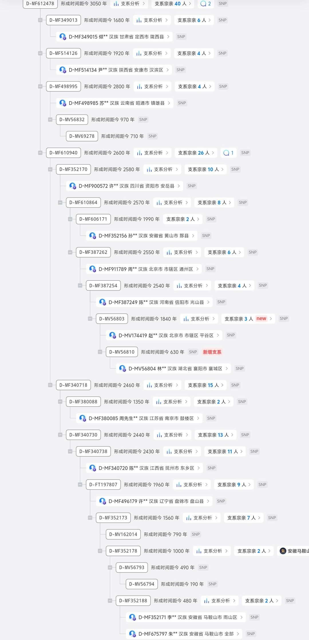 举报该帖子 我感觉这支虽然人不多但是树形不错02-07· 507 浏览4 评论 斌 4 条评论 热门最新 Hao Changan 02-07因为芯片太多卡上游了添加评论点赞 举报该评论 举报该评论 举报类型 违法违规 色情低俗 时政不实信息 引导站外加群 冒充他人 谩骂攻击 网络暴力 其他 无数据 举报描述 举报截图 提交取消评论 抱一天 02-07你这个不错指什么?一级分支多,还是分化多?2 评论点赞 举报该评论 举报该评论 举报类型 违法违规 色情低俗 时政不实信息 引导站外加群 冒充他人 谩骂攻击 网络暴力 其他 无数据 举报描述 举报截图 提交 斌 02-07就是比较连续点赞 举报该评论 举报该评论 举报类型 违法违规 色情低俗 时政不实信息 引导站外加群 冒充他人 谩骂攻击 网络暴力 其他 无数据 举报描述 举报截图 提交取消评论 抱一天 02-07@斌:嗯。。确实,可以看出来,最下面的两人从商周时期开始每个历史节点都有对应的分化,脉络比较清晰点赞 举报该评论 举报该评论 举报类型 违法违规 色情低俗 时政不实信息 引导站外加群 冒充他人 谩骂攻击 网络暴力 其他 无数据 举报描述 举报截图 提交取消评论取消评论 图片关联家族你保存和创建的家族 完成关联单倍群 完成提交评论