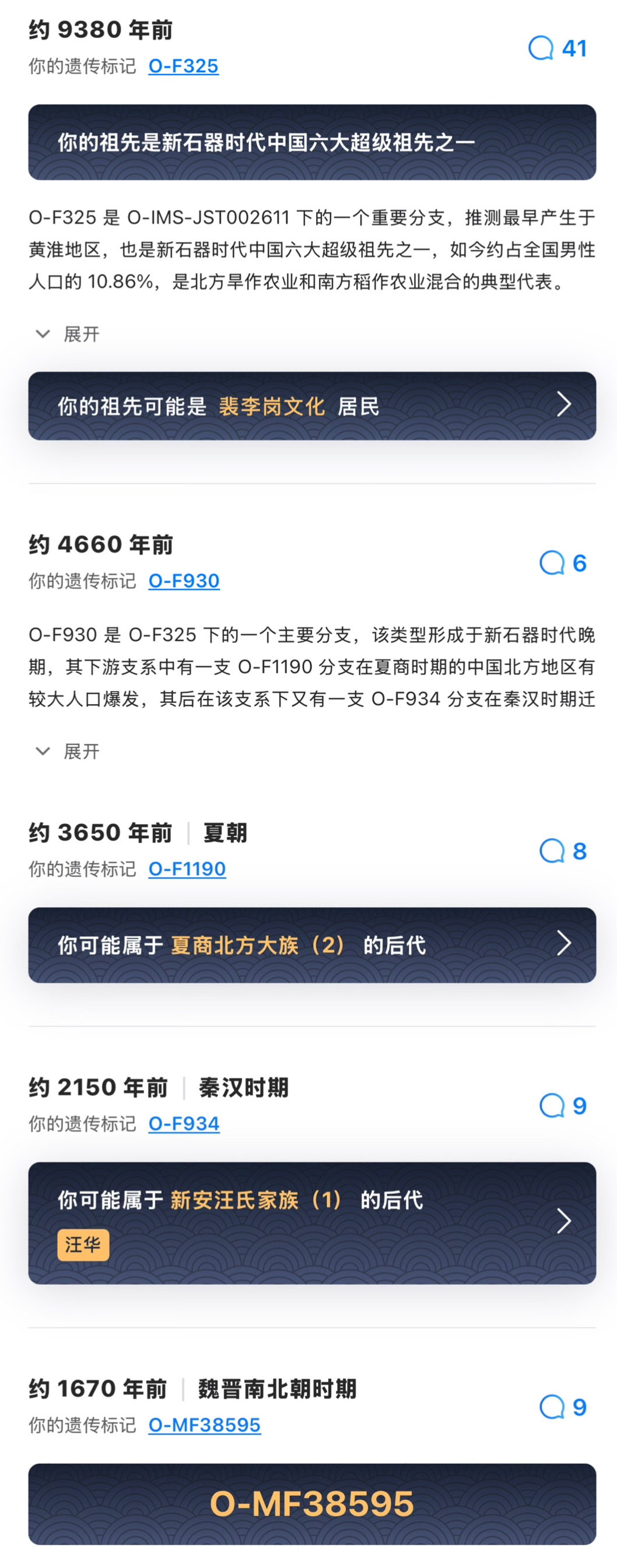 你们这个支系56个人,分属30个姓氏,最多的汪姓13个人,23个姓都只有一个人,秦氏就你一个!真要寻根问祖,高通有必要,但别对高通结果期望太高,需要等等看!高通后多一个自己专属编号,共祖年代大概率下沉到1000年以内,有助于找出最近的同宗!我们也算是宗亲关系!