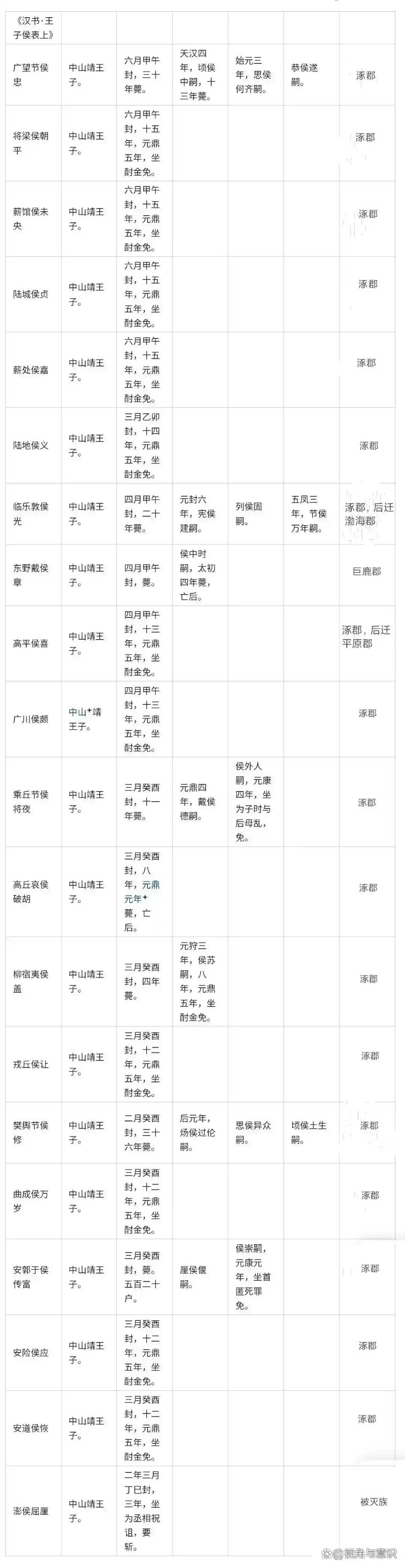 刘胜系中山国传100年,国祚不算特别久,但其生子繁多,王爵废除后,很多侯爵是依旧能继承下去的,据《汉书 王子侯表》记载,刘胜封侯的儿子就有20人,如图。