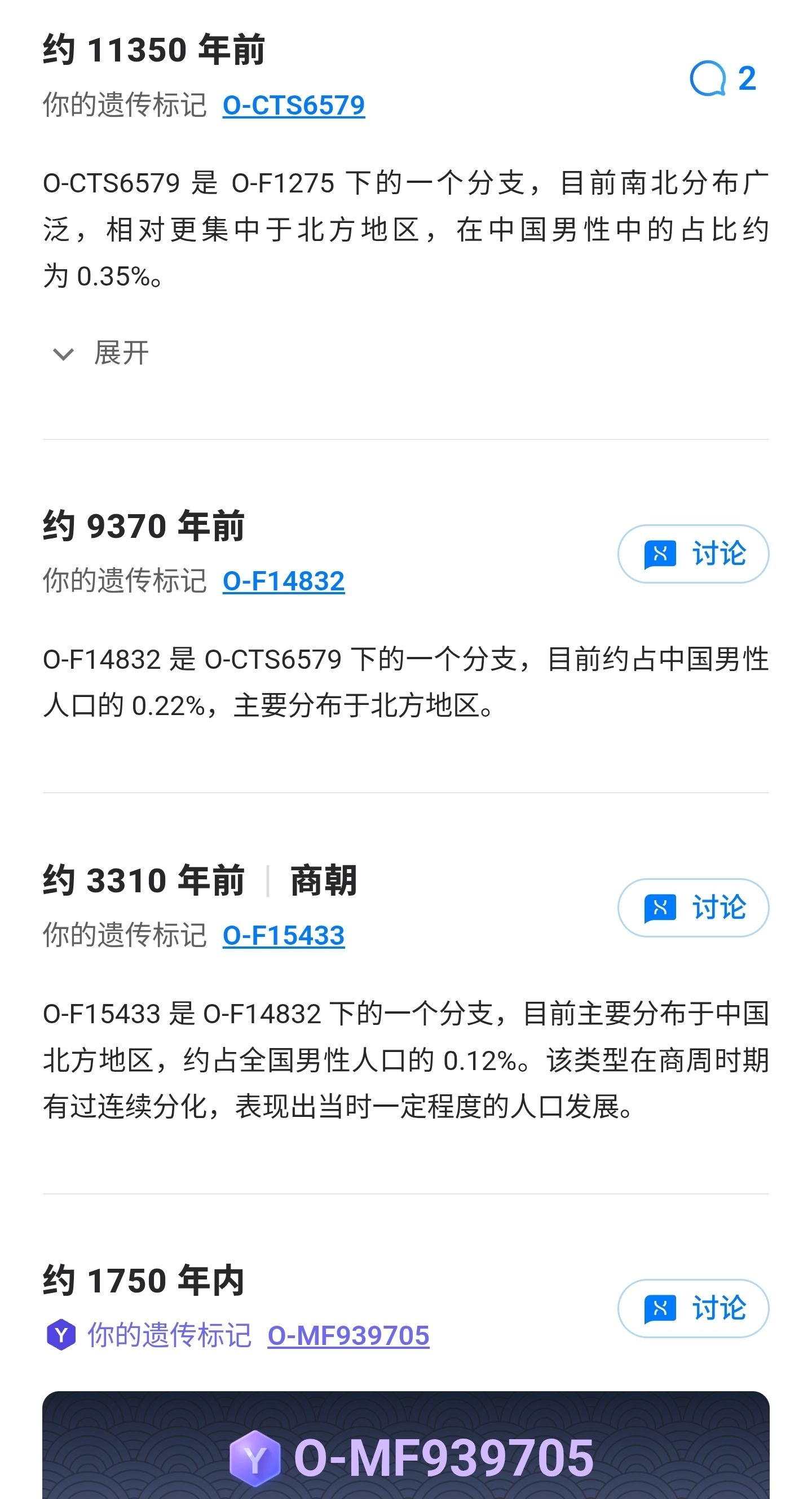 西门山人 03-06正统中原后裔。祖上人口还可以,共祖一万年内0.22%的男性人口,不过不是大支系。目前的支系情况,确定不了2000年前你们祖先的原始姓氏是什么。1 评论1 赞 举报该评论 举报该评论 举报类型 违法违规 色情低俗 时政不实信息 引导站外加群 冒充他人 谩骂攻击 网络暴力 其他 无数据 举报描述 举报截图 提交选才 河东天选才 03-06谢谢!点赞 举报该评论 举报该评论 举报类型 违法违规 色情低俗 时政不实信息 引导站外加群 冒充他人 谩骂攻击 网络暴力 其他 无数据 举报描述 举报截图 提交取消评论取消评论