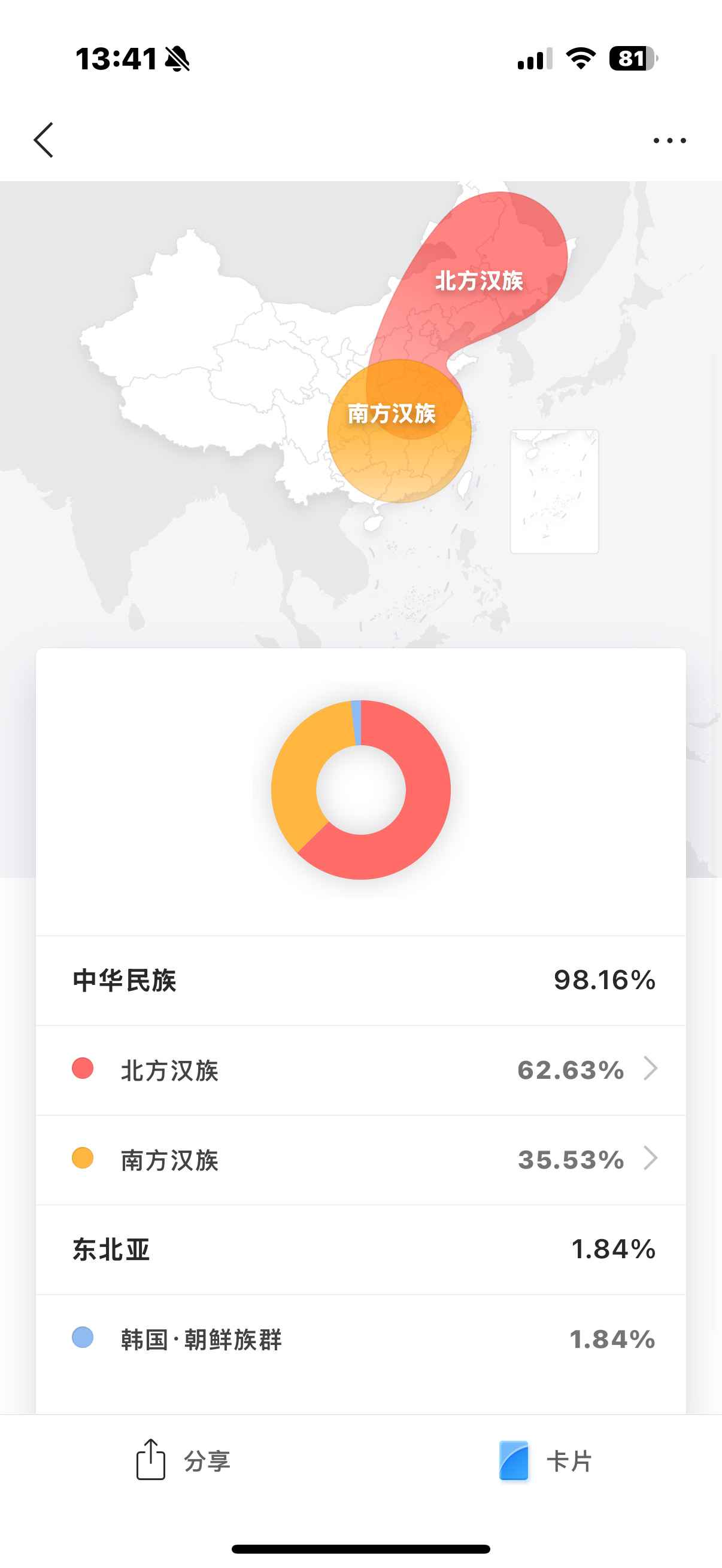 阿白阿白 昨天 06:01民族成分符合浙江中北及江苏等地的情况。可以看看前面几个省下面的细分有没有地级市、县比较集中的。看cM前几位,安徽也是符合的。8 评论2 赞 举报该评论 举报该评论 举报类型 违法违规 色情低俗 时政不实信息 引导站外加群 冒充他人 谩骂攻击 网络暴力 其他 无数据 举报描述 举报截图 提交心心 心心 昨天 06:06我的23魔方数据太分散了,具体分析不出来我到底会是哪里人,唉😔,我也不知道怎么寻亲了,我是2003年在安徽马鞍山市妇幼保健医院出生,然后父母就抛下了我,在医院留下的名字是王宏宝和红花点赞 举报该评论 举报该评论 举报类型 违法违规 色情低俗 时政不实信息 引导站外加群 冒充他人 谩骂攻击 网络暴力 其他 无数据 举报描述 举报截图 提交取消评论 英布之剑 昨天 06:32@心心:寻亲,最怕的是你在这里找他们,他们在别处找你。。所以先试试抖音,可能比这里有效。。。这里可以做进一步确认。点赞 举报该评论 举报该评论 举报类型 违法违规 色情低俗 时政不实信息 引导站外加群 冒充他人 谩骂攻击 网络暴力 其他 无数据 举报描述 举报截图 提交取消评论取消评论