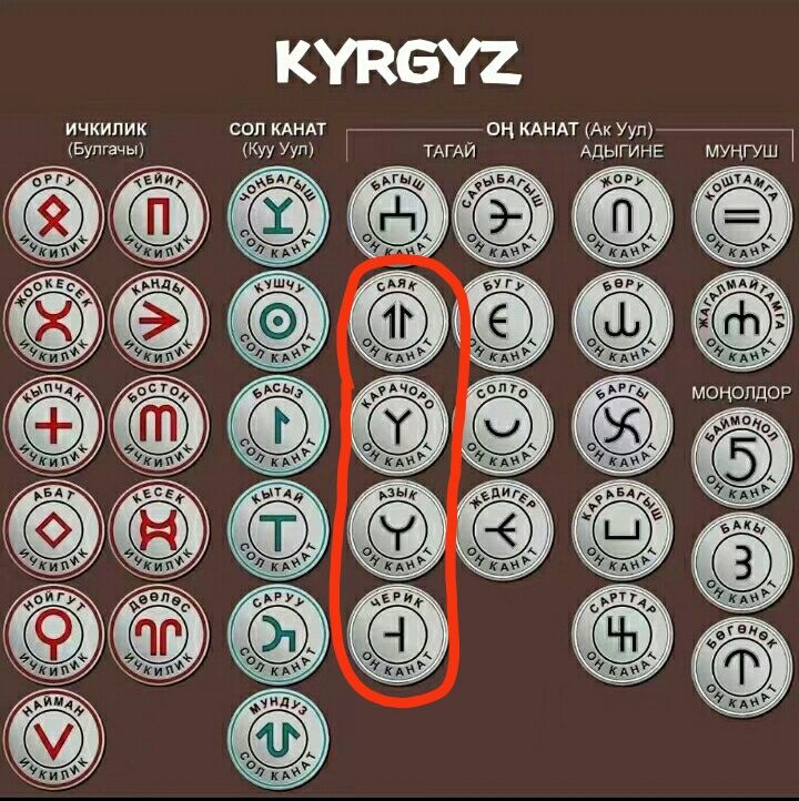 这个柯尔克孜萨亚克(Saiaq)部落印记就是现在的阿巴克克烈贾德克和健铁凯印记,柯尔克孜切里克Sherig(勇士)氏族就是,阿巴克克烈切鲁士氏族,在柯尔克孜语中把切里克部落也称作切鲁士氏族。